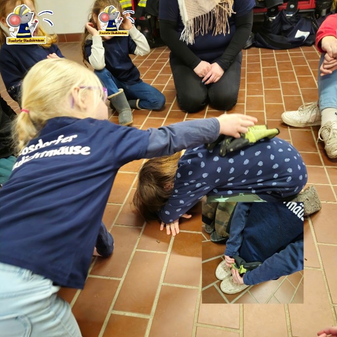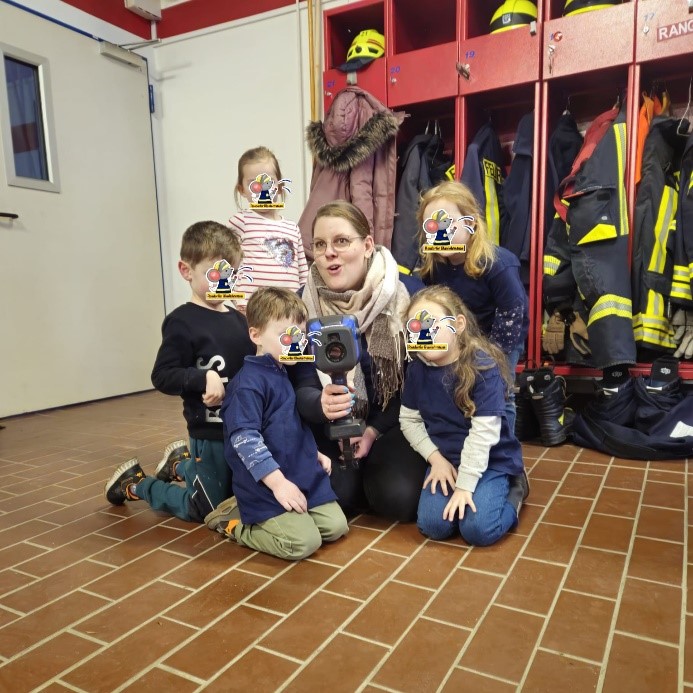 Nach der Wärmebildkamera spielten wir eine Runde „Feuerwehrmann bzw. Feuerwehrfrau, dein Handschuh ist weg“. Dabei durfte das Kind in der Mitte erraten, wer den Handschuh vom Rücken genommen hatte.