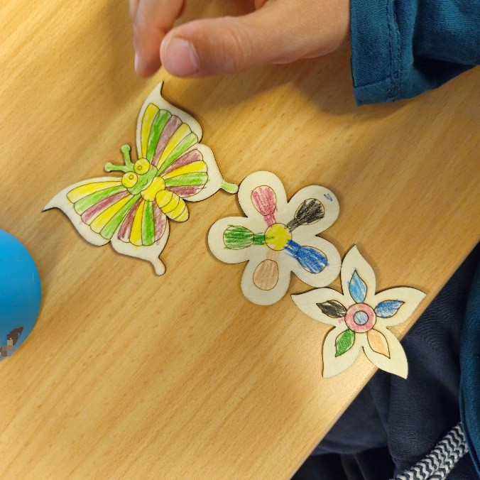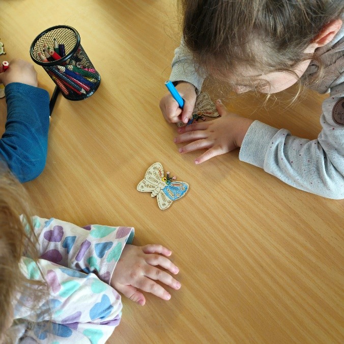 Kleine Künstler am Werk: Blumen und Schmetterlinge werden bunt