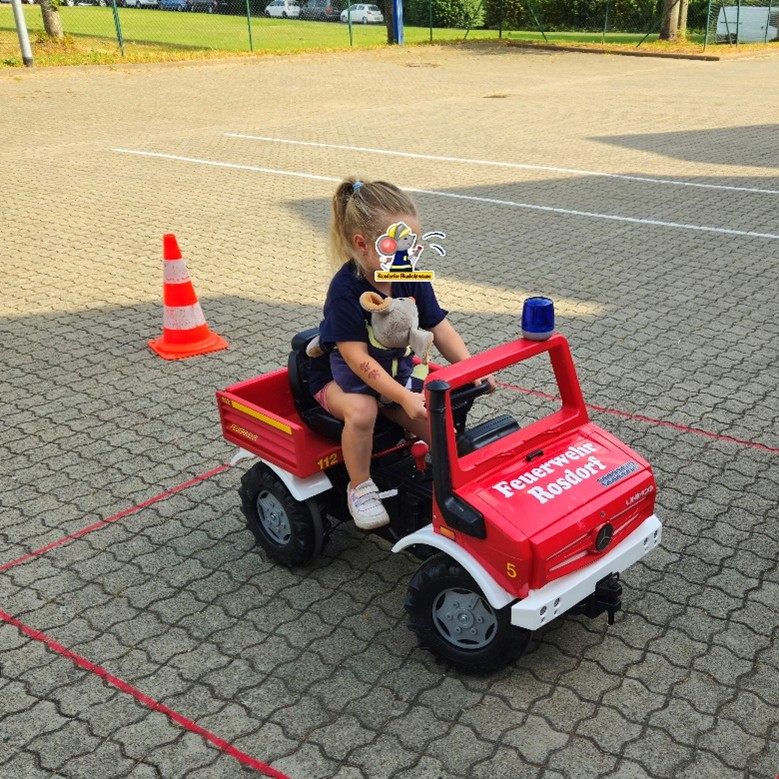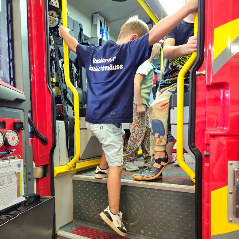 Zum Start haben wir uns erst einmal kennengelernt und gemeinsam die Feuerwehrautos in Kindergröße erkundet – natürlich inklusive einer kleinen Probefahrt.
