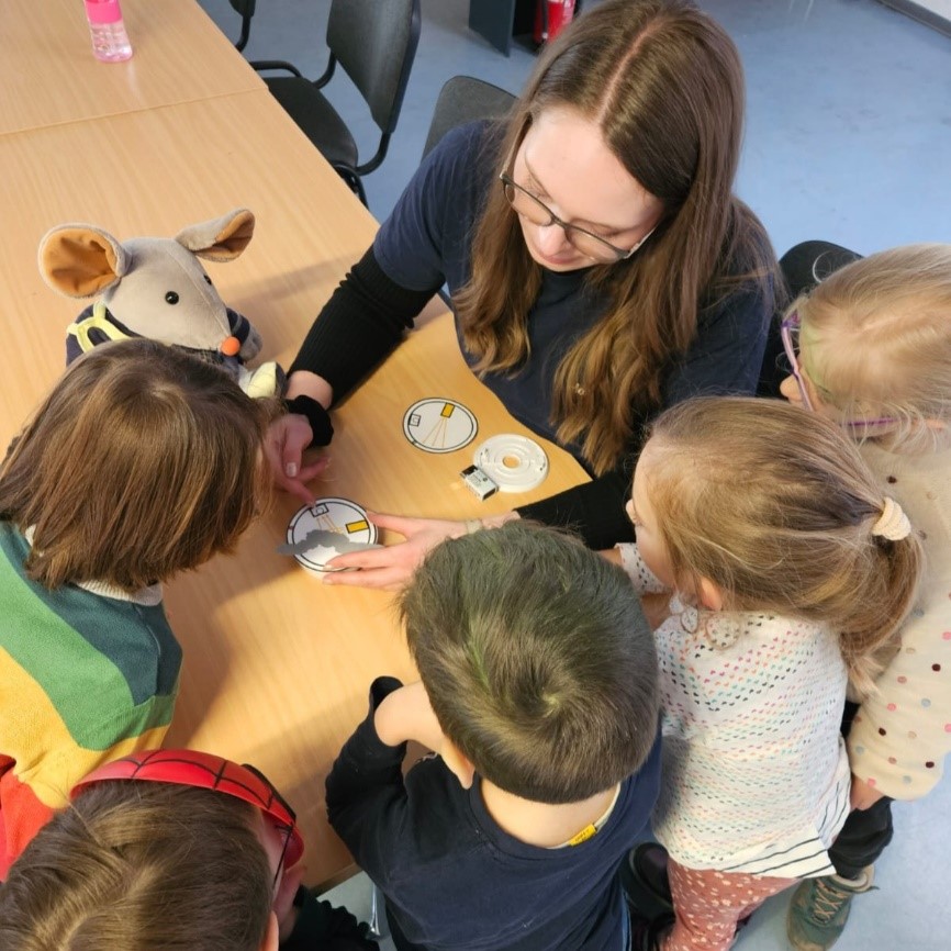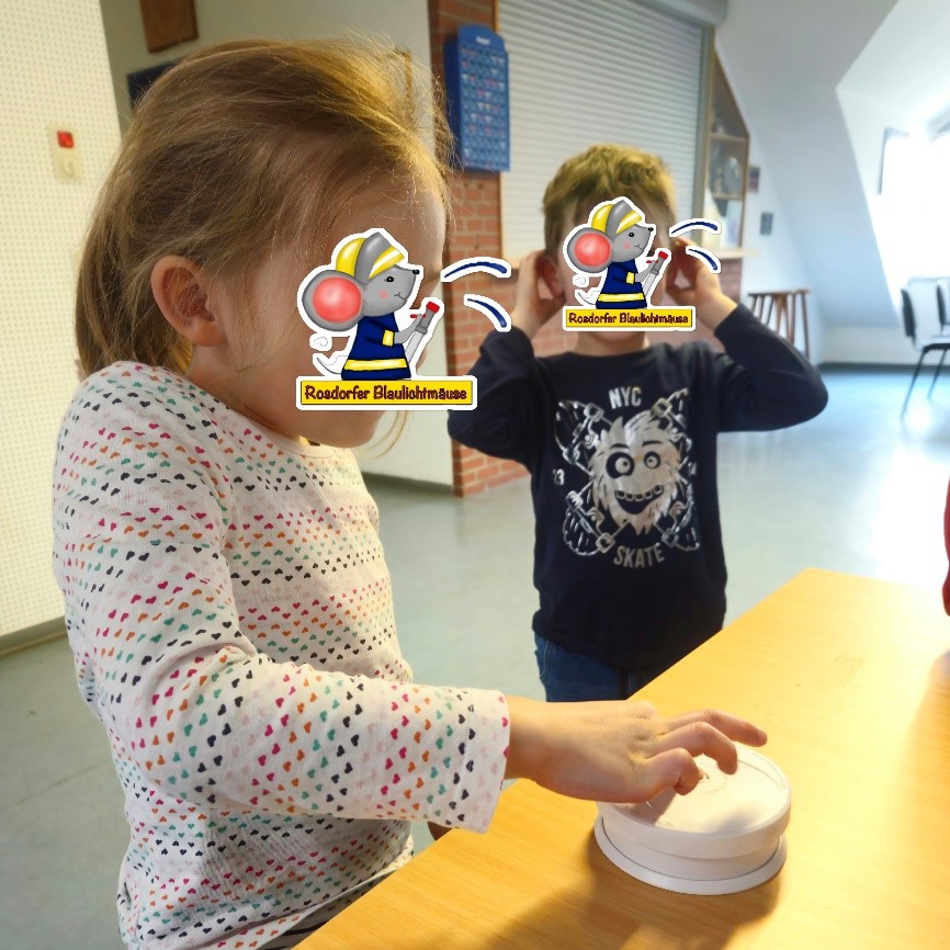 Nach der Geschichte haben wir uns einen Rauchmelder, den sogenannten „Rauchengel“, genauer angeschaut und besprochen, wie er funktioniert. Zum Abschluss durfte jedes Kind den Rauchmelder selbst ausprobieren.