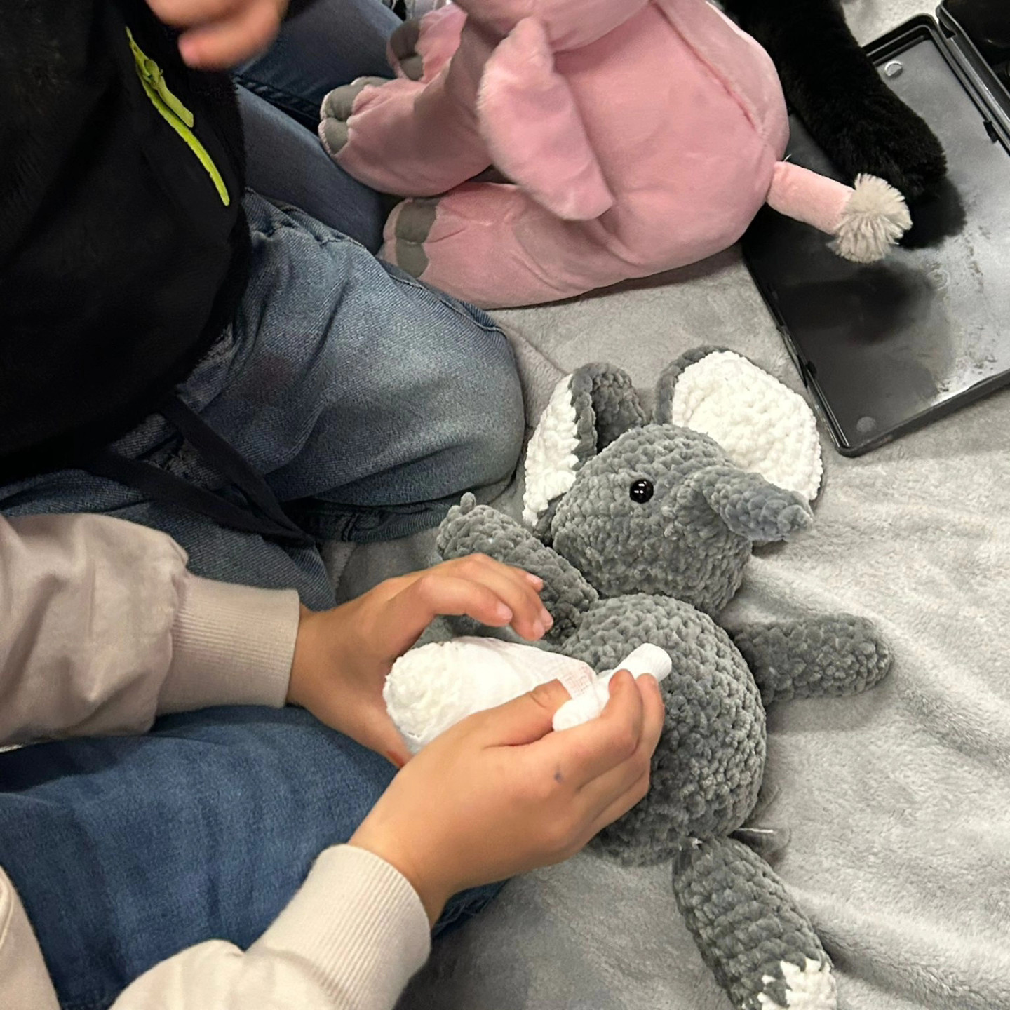Am letzten Mittwoch brachten die Kinder ihre Kuscheltiere von zu Hause mit. Gemeinsam mit der Blaulichtmaus versorgten sie zunächst die Wunden der Kuscheltiere mit Verbänden. 🧸🚑