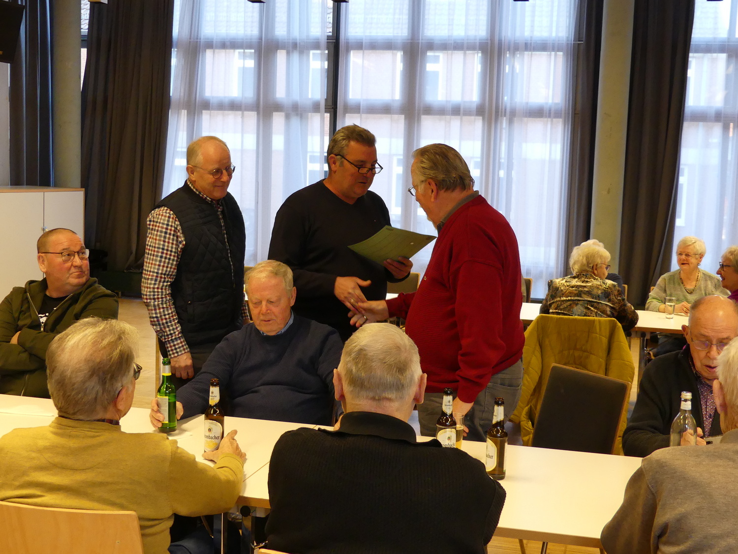 Seniorentreffen am 08. Februar 2023 Wir hatten die Gelegenheit unsere Senioren bei einem Treffen im Gemeindezentrum im Neuen Jahr zu begrüßen.Es war wieder einmal eine nette Atmosphäre, in der sich alle über die alten Zeiten austauschen konnten.Auf der Jahreshauptversammlung war es leider nicht möglich, aber an diesem Tag konnten wir Norbert Hellmich für seine 40 jährige Mitgliedschaft im Feuerwehrverein ehren. Unser Vereinsvorsitzender Mario Wienecke überreichte ihm eine Ehrenurkunde sowie eine Ehrennadel. Wir danken Norbert für eine 40 jährige Mitgliedschaft und hoffen auf noch viele Jahreim Feuerwehrverein.Ein neuer Termin für das nächste Treffen steht noch nicht fest, aber wer kann ist herzlich eingeladen zum Osterfeuer zu kommen. Auch am 1. Mai wollen wir wieder auf unserem Feuerwehrgelände grillen. Hierzu sind natürlich alle Senioren herzlich eingeladen. Zurück zur senioren-Abteilung