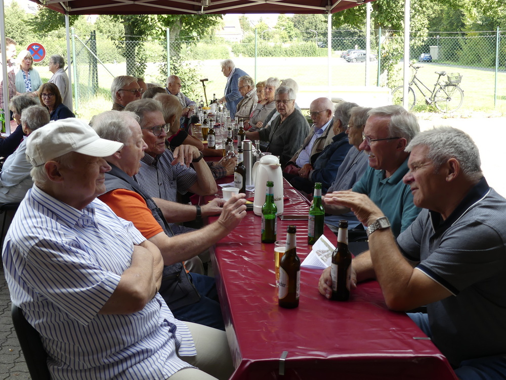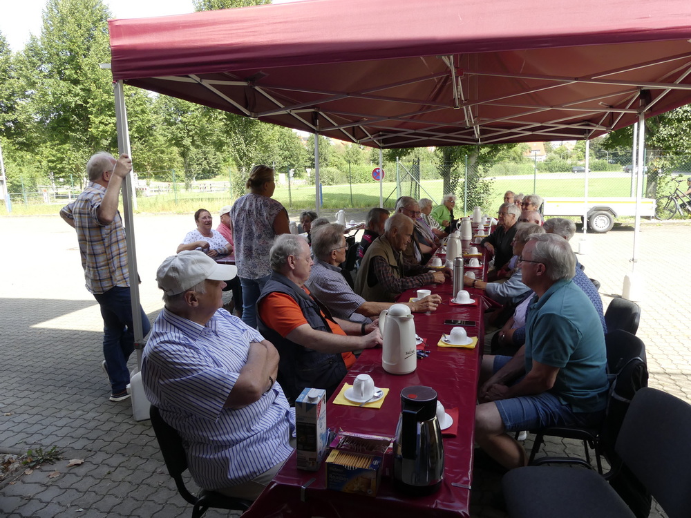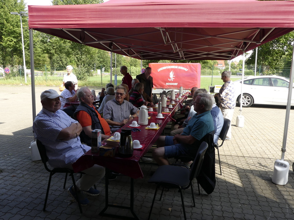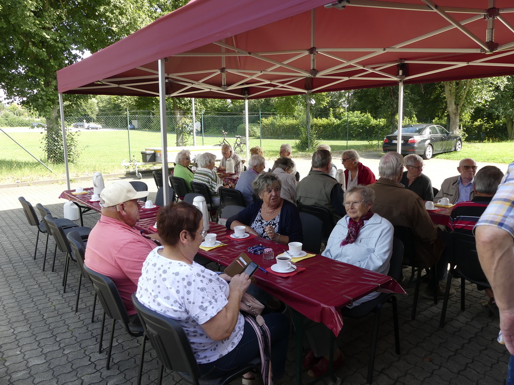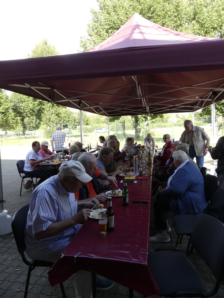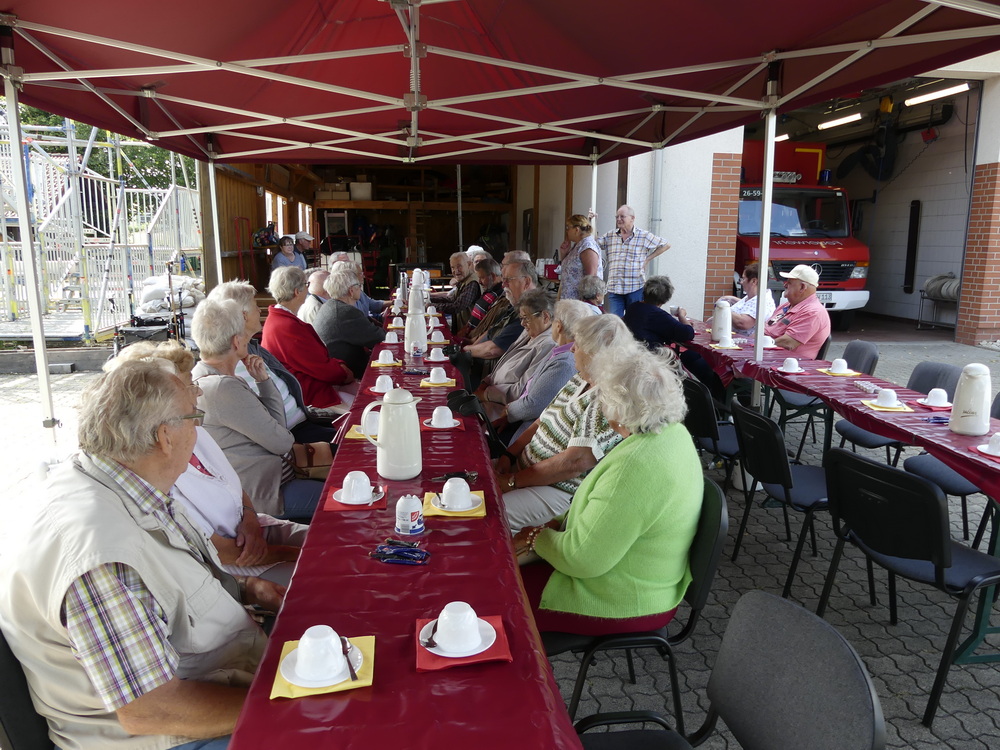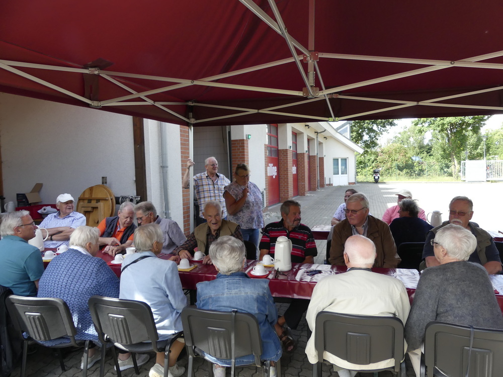 Heute haben wir uns bei schönem warmen Wetter am Feuerwehrhaus getroffen. Außer Kaffee und Kuchen waren heute auch noch Grillwürstchen und Grillfleisch angesagt. Es ist immer wieder herrlich wenn an der Feuerwehr ein Zelt aufgebaut ist und alle den schönen Tag genießen können. Es hat wieder richtig viel Spaß gemacht. Ein Dankeschön für die vielen Salatspenden und auch einen Dank an den Grillmeister. Der nächstee Termin ist für Oktober geplant. Dann werden wir uns wieder im Gemeindezentrum treffen.